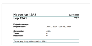 - Kiểm tra kết quả: Mở báo cáo vừa tạo, kiểm tra các thông tin. Quay lại phần mềm Gantt để chỉnh sửa hoặc định dạng lại nếu cần. Sau đó xuất lại báo cáo mới.