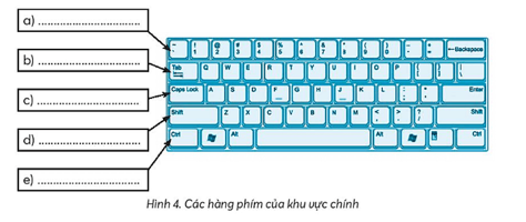 Em hãy điền vào chỗ chấm tên hàng phím của khu vực chính của bàn phím ở Hình 4.
