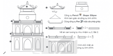 Tháp Rùa được tạo bởi các thành phần như trong Hình 5.2. Vẽ theo các bước sau: