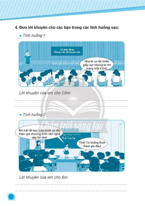 Đưa lời khuyên cho các bạn trong các tình huống sau: