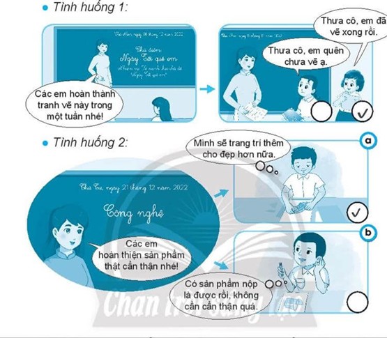 Đánh dấu vào dưới tranh thể hiện hoàn thành nhiệm đúng kế hoạch và có chất lượng.