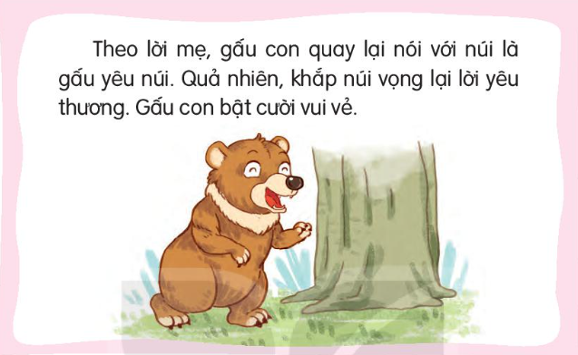 a. Khi gấu con vui mừng reo lên “A!”, ngay lập tức có tiếng “A!” vọng lại.