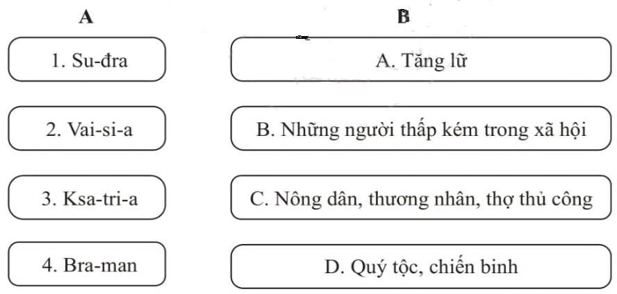 Hãy nối ý ở cột A với ý ở cột B sao cho phù hợp