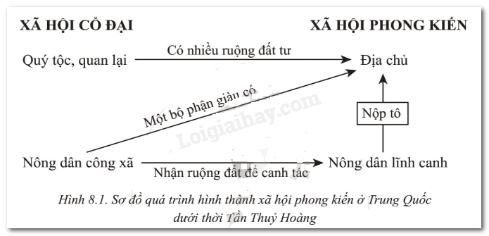 Dựa vào sơ đồ dưới đây, hãy mô tả quá trình hình thành xã hội phong kiến ở Trung Quốc dưới thời Tần Thuỷ Hoàng.