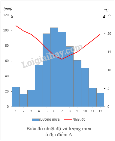 Dựa vào số liệu nhiệt độ và lượng mưa của địa điểm A ở câu 2 để vẽ biểu đồ.
