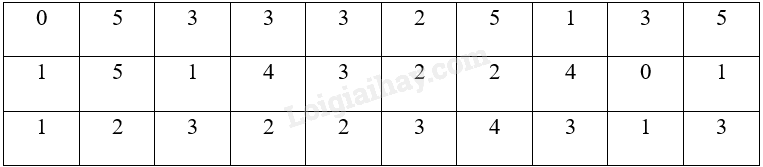 Tần số của các giá trị 0; 1; 2; 3; 4; 5 lần lượt là 2; 6; 6; 9; 3; 4.