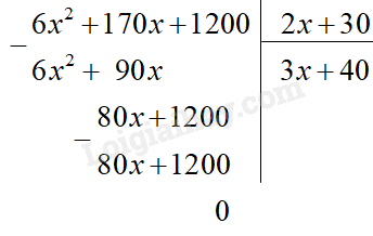 Số sản phẩm mà công ty đó đã bán được theo x là: \((6{x^2} + 170x + 1200):(2x + 30)\) (sản phẩm).
