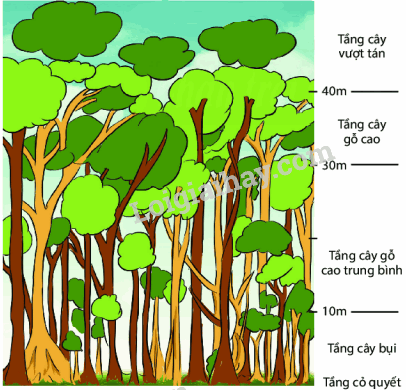 Hình 20.4. Cấu trúc tầng ở rừng mưa nhiệt đới