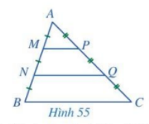 Cho tam giác ABC (Hình 55), các điểm M, N thuộc cạnh AB thỏa mãn