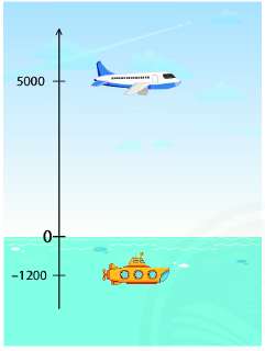 Một máy bay đang bay ở độ cao 5000m trên mực nước biển, tình cờ ngay bên dưới máy bay có một chiếc tàu ngầm đang lặn ở độ sâu 1200m dưới mực nước biển. Tính khoảng cách theo chiều thẳng đứng giữa máy bay và tàu ngầm.