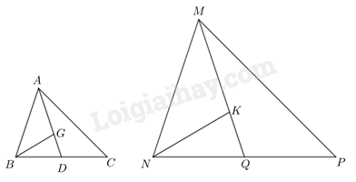Mà G và K lần lượt là trọng tâm của tam giác ABC và tam giác MNP nên \(AD = \frac{3}{2}AG\) và \(MQ = \frac{3}{2}MK\).