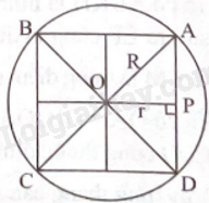 Hình vuông ABCD nội tiếp đường tròn (O; R) với R = OA = OB = OC = OD = \(\frac{{a\sqrt 2 }}{2}\).