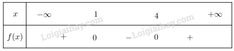 Vậy \(f\left( x \right)\) dương trong hai khoảng \(\left( { - \infty ;1} \right)\) và \(\left( {4; + \infty } \right)\), âm trong khoảng \(\left( {1;4} \right)\)