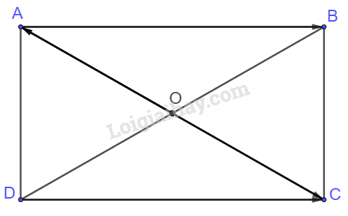 Cho hình chữ nhật ABCD có tâm O là giao điểm của hai đường chéo. Hãy chi ra một cặp vectơ