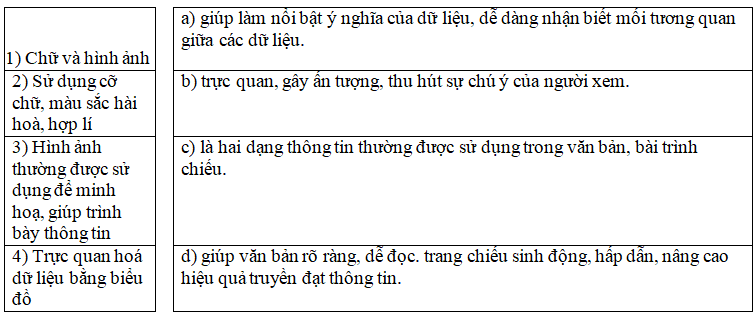 Ghép mỗi nội dung trình bày ở cột bên trái với một mục ở cột bên phải cho phù hợp.