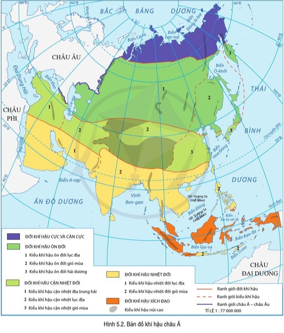 Đọc thông tin trong phần”Khí hậu” và quan sát hình 5.2.