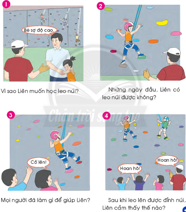 - Tranh 1: Liên muốn học leo núi để vượt qua được nỗi sợ độ cao.