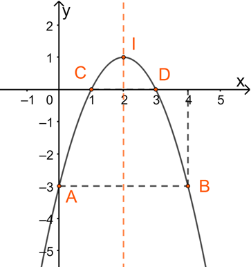 + Điểm đối xứng với A(0;-3) qua trục đối xứng \(x = 2\) là B(4;-3)