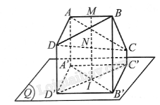Do phép chiếu song song không làm thay đổi tỉ số giữa các đoạn thẳng cùng nằm trên 1 đường thẳng, nên do \(M\) là trung điểm của \(AB\) nên \(I\) là trung điểm của \(A'B'\). Tương tự, \(I\) là trung điểm của \(C'D'\). Suy ra \(A'C'B'D'\) là hình bình hành.
