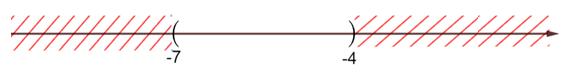 a) \(A = \left\{ {x \in \mathbb{R}\left| { - 7 < x < - 4} \right.} \right\} = \left( { - 7; - 4} \right)\) được biểu diễn như sau: