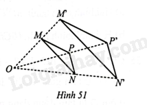 Cho điểm \(O\) nằm ngoài tam giác \(MNP\). Trên các tia \(OM,ON,OP\) ta lần lượt lấy các điểm \(M',N',P'\) sao cho \(\frac{{OM'}}{{OM}} = \frac{{ON'}}{{ON}} = \frac{{OP'}}{{OP}} = \frac{5}{3}\) (Hình 51).