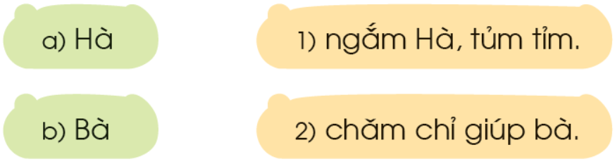 Hà nhỏ mà chăm chỉ. Hà giúp bà xếp đồ ở tủ. Hà nhổ đám cỏ um tùm ở ngõ.