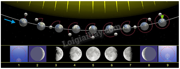 Hãy vẽ hình dạng Mặt Trăng mà ta nhìn thấy vào khoảng các ngày mồng 4 – 5, mồng 7 – 8 và các ngày 18 – 19 của tháng Âm lịch.