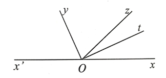 Đo các góc xOz, xOy, tOy, xOx' ở Hình 42. Xác định góc nhọn, góc vuông, góc tù, góc bẹt trong các góc đó.