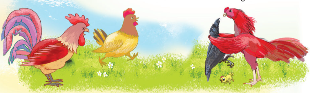 Vừa khi đó, thám tử gà cồ tóm cổ quạ. Cả xóm ồ ra, nom rõ quạ tha gà nhép.