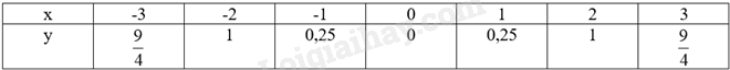 Thay lần lượt các giá trị \(x = - 3;x = - 2;x = - 1;x = 0;x = 1;x = 2;x = 3\) vào hàm số \(y = 0,25{x^2}\) ta sẽ tìm được y tương ứng, từ đó hoàn thành được bảng.