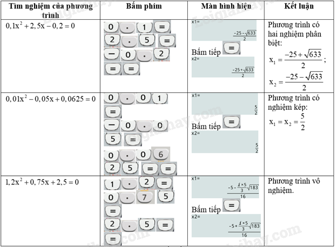 Sử dụng máy tính cầm tay, tìm nghiệm của các phương trình sau: