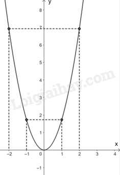 - Trong mặt phẳng tọa độ Oxy, biểu diễn các cặp điểm (x; y) trong bảng giá trị trên và nối chúng lại để được một đường cong là đồ thị của hàm số \(y = a{x^2}\left( {a \ne 0} \right)\).