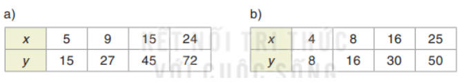 b) Ta có: \(\dfrac{4}{8} = \dfrac{8}{{16}} = \dfrac{{25}}{{50}} \ne \dfrac{{16}}{{30}}\) nên 2 đại lượng x, y không là hai đại lượng tỉ lệ thuận.