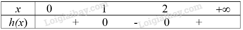 Tam thức bậc hai \(h(x) = {t^2} - 3t + 2\) có a = 1 > 0 và có hai nghiệm là \({x_1} = 1,{x_2} = 2\) nên ta có bảng xét dấu: