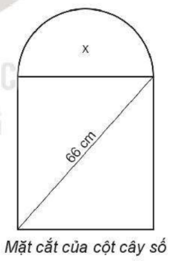 Mặt cắt đứng của cột cây số trên quốc lộ có dạng nửa hình tròn ở phía trên và phía dưới có dạng hình chữ nhật (xem hình bên). Biết rằng đường kính của nửa hình tròn cũng là cạnh phía trên của hình chữ nhật và đường chéo của hình chữ nhật có độ dài 66 cm. Tìm kích thước của hình chữ nhật, biết rằng diện tích của phần nửa hình tròn bằng 0,3 lần diện tích của phần hình chữ nhật. Lấy \(\pi = 3,14\) và làm tròn kết quả đến chữ số thập phân thứ hai.
