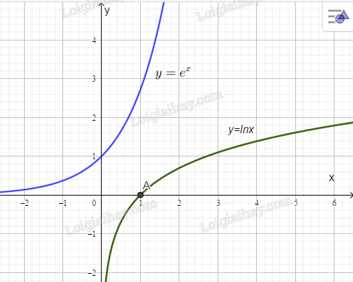 a) Vẽ đồ thị của hai hàm số \(y = {e^x}\) và \(y = {\rm{ln}}x\) trên cùng một hệ trục toạ độ.