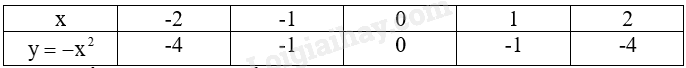 + Trong mặt phẳng tọa độ Oxy, biểu diễn các cặp điểm (x; y) trong bảng giá trị trên và nối chúng lại để được một đường cong là đồ thị của hàm số \(y = a{x^2}\left( {a \ne 0} \right)\).