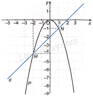 Trên cùng một mặt phẳng tọa độ Oxy, vẽ parabol (P): (y = - {x^2}) và đường thẳng (d): (y = x - 2). Dùng đồ thị xác định tọa độ các giao điểm của hai đường này.