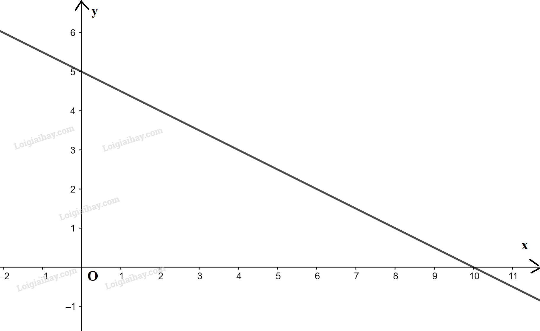 Đồ thị hàm số \(y = - \frac{1}{2}x + 5\) là đường thẳng đi qua 2 điểm A(0; 5) và B\(\left( {10;0} \right)\)