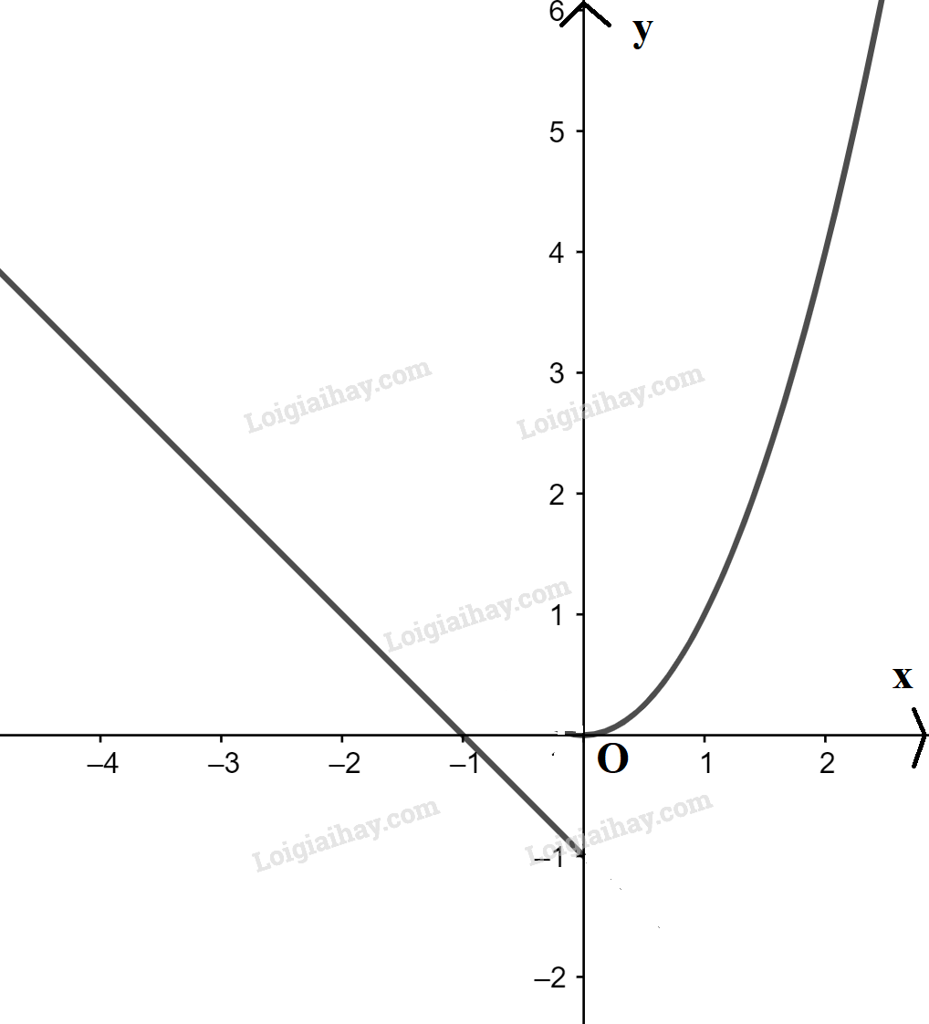c) \(y = \left\{ \begin{array}{l}{x^2},x \ge 0\\ - x - 1,x < 0\end{array} \right.\)