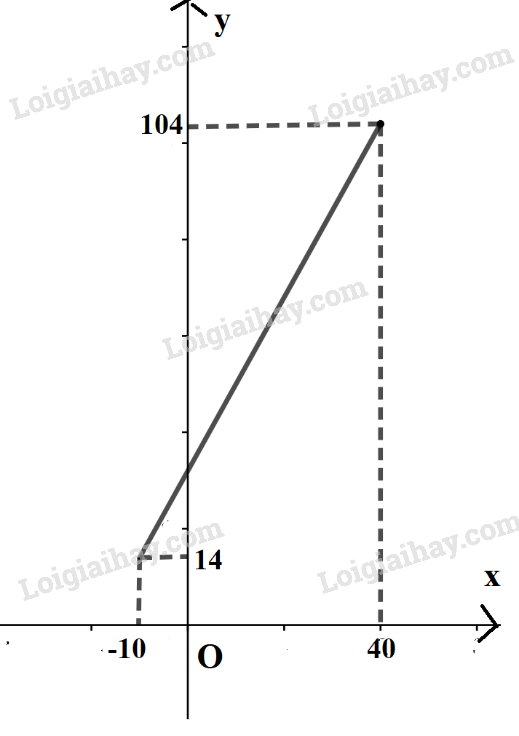 c) Đồ thị hàm số F = F(C) trên đoạn [-10; 40] là đoạn thẳng nối hai điểm (-10; 14) và (40; 104)