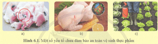 Yếu tố nào chưa đảm bảo an toàn vệ sinh thực phẩm trong Hình 6.1. Giải thích.