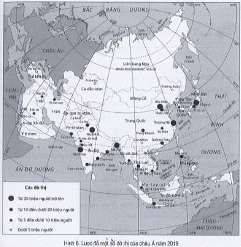 b) Hãy nhận xét và giải thích về sự phân bố của các đô thị ở châu Á