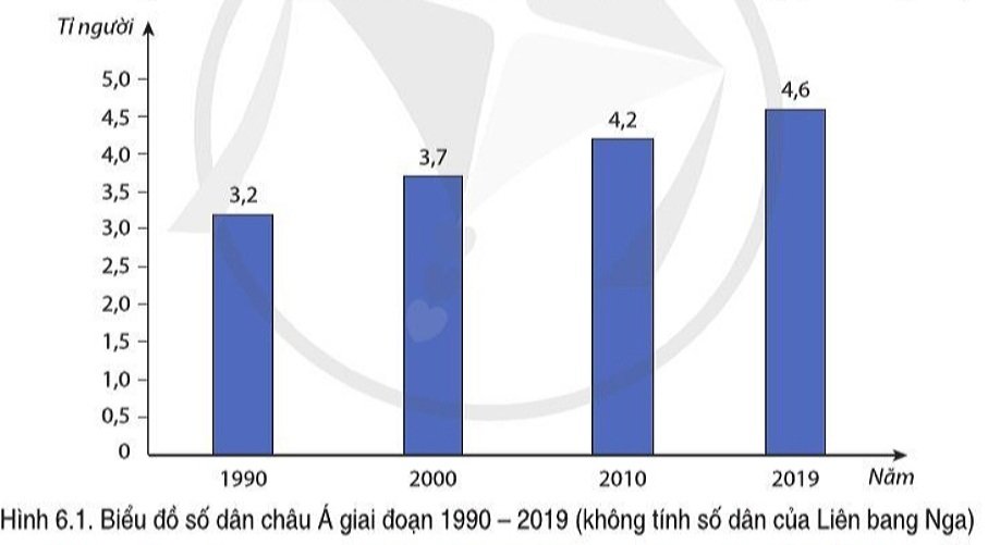 Đọc thông tin và quan sát hình 6.1, hãy nhận xét về số dân của châu Á qua các năm.