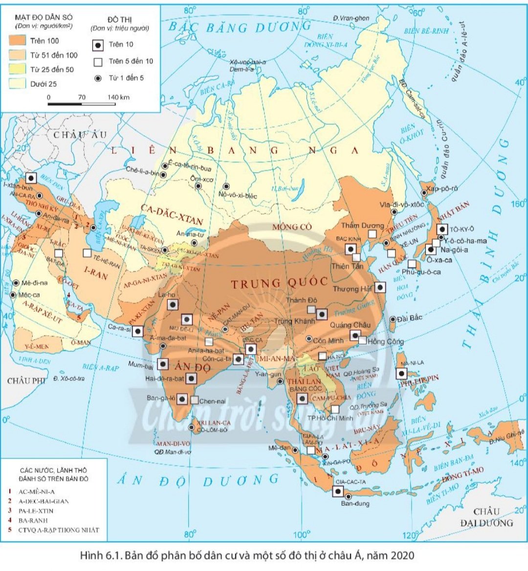 Dựa vào hình 6.1 và thông tin trong bài, em hãy trình bày sự phân bố dân cư châu Á.