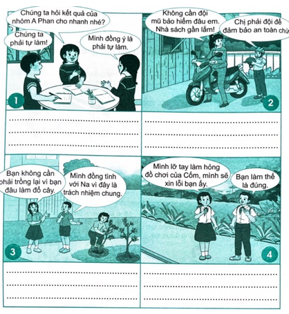 + Tranh 4: Hai bạn trong tranh đã bảo vệ cái đúng, cái tốt bằng việc trung thực nhận lỗi.
