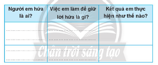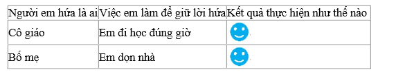 Ghi lại và tự đánh giá việc giữ lời hứa của em.
