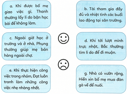 Em hãy vẽ hình ☺ vào ô trong tranh thể hiện sự tích cực, tự giác tham gia lao động.