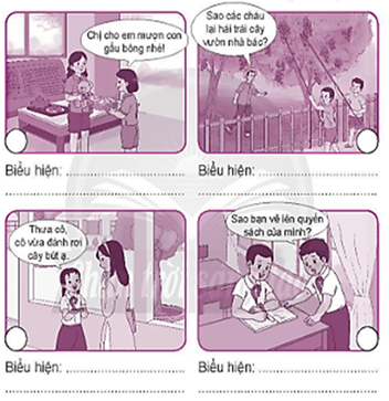 + Bức tranh a: Bạn nữ xin phép chị cho mượn gấu bông chơi