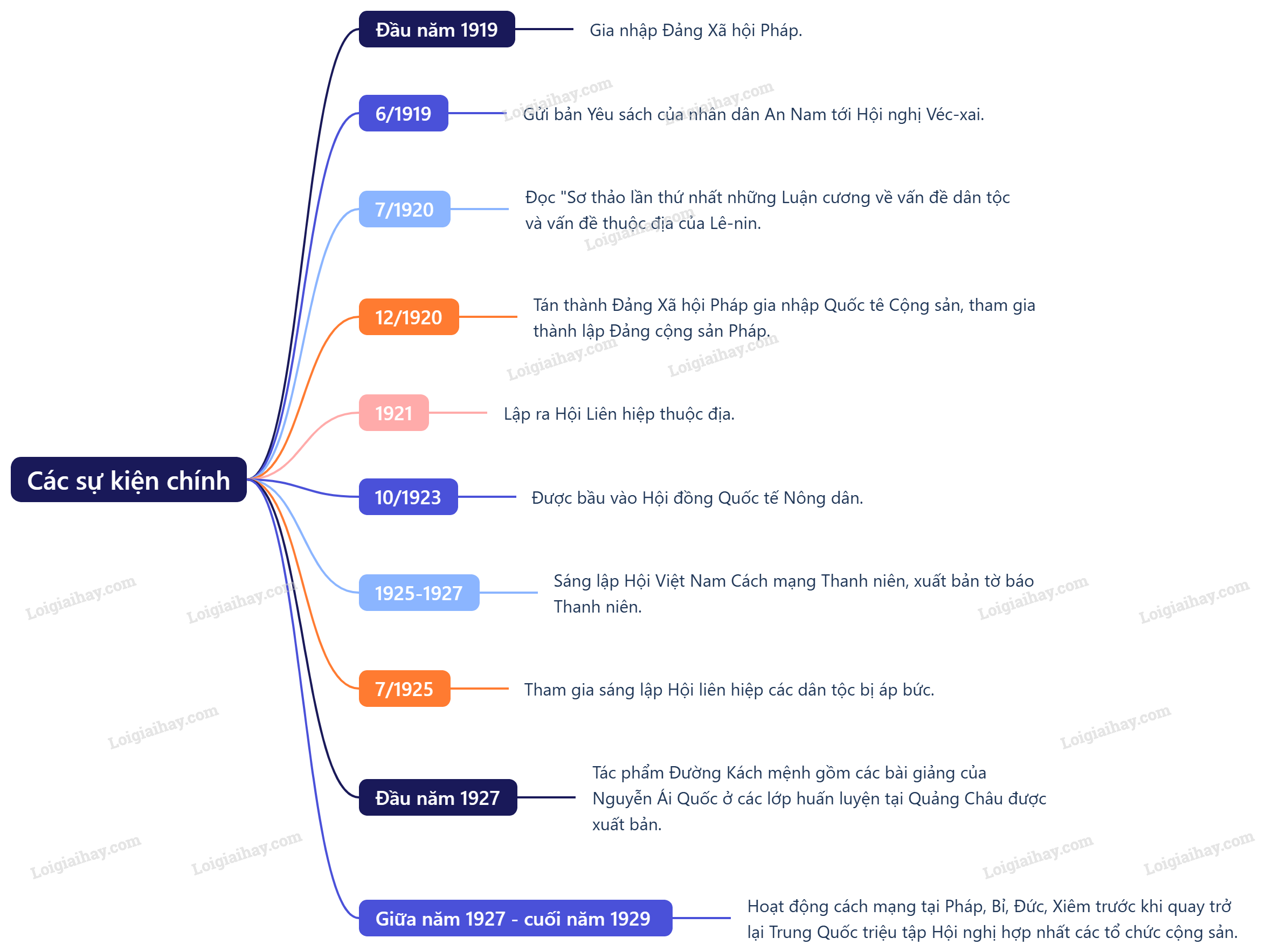 - Chỉ ra những sự kiện chính trong hành trình tìm đường cứu nước, hoạt động cách mạng của Nguyễn Ái Quốc từ năm 1918 dến năm 1930 rồi lập sơ đồ tư duy hoặc inforgraphic .